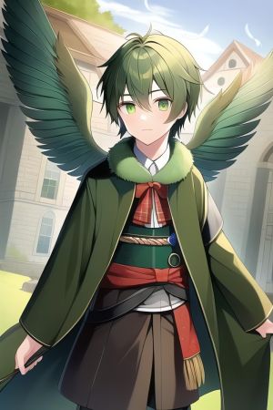 影中之人约二六之年,翠绿色羽毛的双翼收于背后,面色平静。