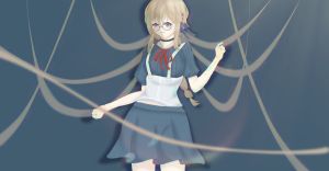 淡黄色麻花辫、浅紫色眼瞳、还有深蓝色蝴蝶结是她的标志。